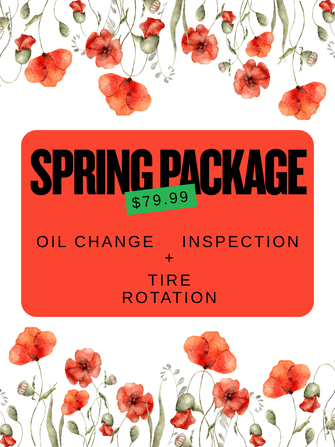 Grab our Spring Package for $79.99 and drive into the season with confidence.